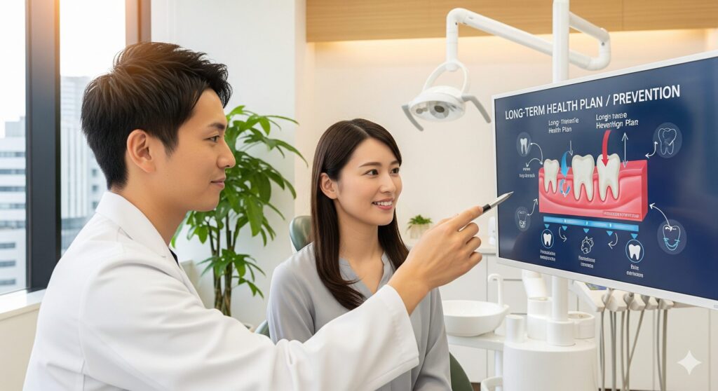 歯周病が原因で歯が浮くような痛みや違和感がある場合は、徹底的な歯石除去やルートプレーニングを行い、歯を支える組織の炎症を鎮静化させ、痛みを緩和します。