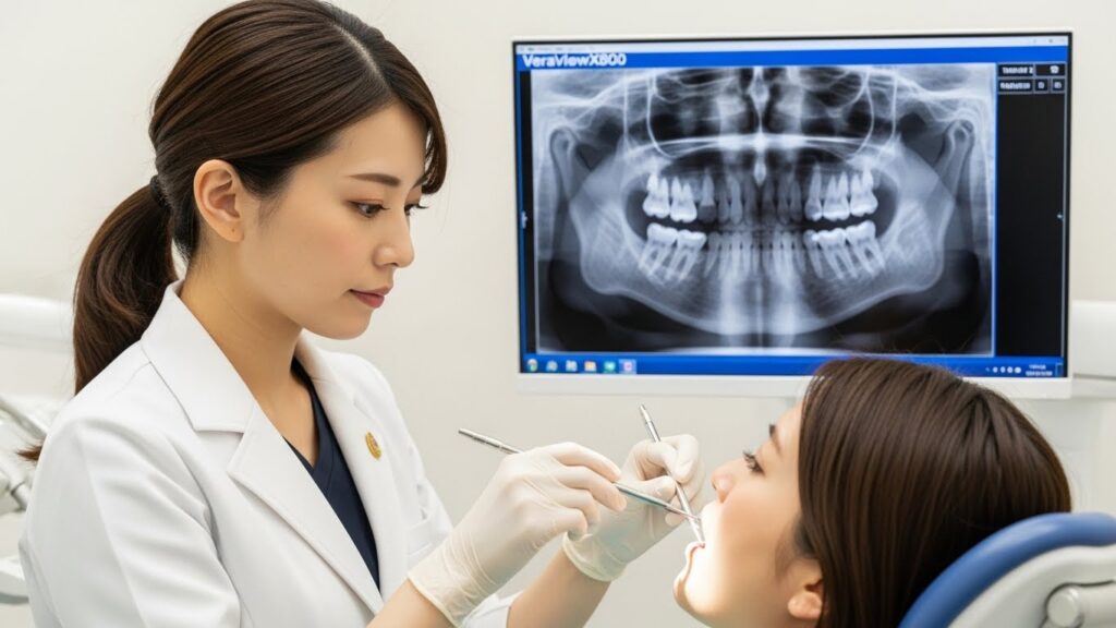 当院導入のモリタ製「VeraviewX800」を活用し、歯の摩耗度合い、顎関節の状態、および噛み合わせに影響を与える骨格の微妙なズレを立体的に把握します。